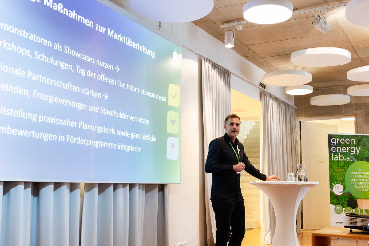 Beim Event von Green Energy Lab am 27. November 2025 in Wien wurde erstmals ein neues Präsentationsformat für unsere Forschungsprojekte ausprobiert: Die Ergebnisse wurden in kompakten Kurzvorträgen „gepitcht“. Anschließend stellten sich die Projektverantwortlichen den Fragen aus dem Publikum. Auf diese Weise bekamen die Besucher tiefe Einblicke aus erster Hand in Forschungsergebnisse und Musterlösungen sowie deren Skalierungspotenzial für die Energiewende. Ein weiteres Highlight der Veranstaltung waren außerdem die zahlreichen Gespräche auf und abseits der Bühne mit langjährigen Wegbegleiter: innen des Green Energy Lab.