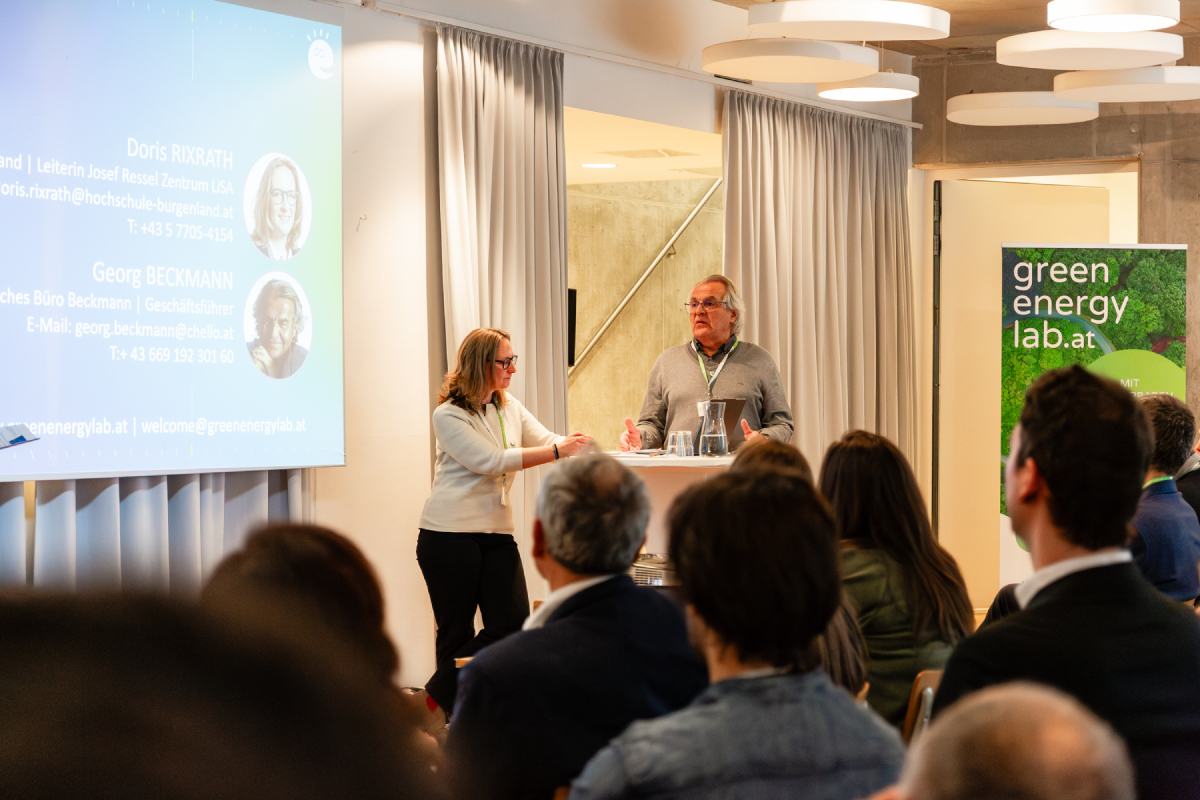Im Opening Statement begrüßte die Obfrau und Vorstandssprecherin von Green Energy Lab, Andrea Edelmann, die Energie AG Oberösterreich als neues Vereinsmitglied und Julia Weberberger als neues Mitglied im Vorstand der Forschungsinitiative. Sebastian Steinlechner von der EVN-Tochter CyberGrid zeigte auf, wie durch den Hybridspeicher Theiß ein traditioneller Kraftwerksstandort zum modernen Energieknoten wurde. Rainer Matiasek, Vorstandsmitglied im Green Energy Lab für die Burgenland Energie, stellte die neue Innovation Premium Partnership für Unternehmen vor und Philipp Novakovits präsentierte die Kopplung von Windkraft und Fernwärme im Energy Hub Neusiedl (Hybrid Distric Heating Demo).